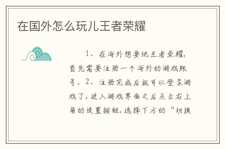 1、在海外想要玩王者荣耀,首先需要注册一个海外的游戏账号。